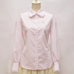 (右) ハートロゴ刺繍ストライプブラウス